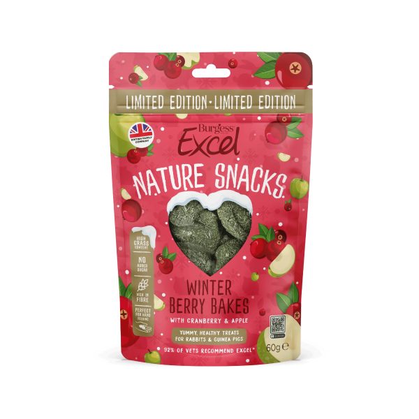 Baked with love, these Excel Winter Berry Bakes are irresistible to rabbits and guinea pigs and are naturally healthy too. Made with seasonal forage blend, Burgess Excel Winter Berry Bakes are a complementary feed for rabbit and guinea pigs. 60g.