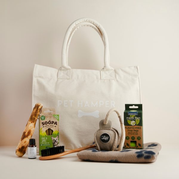 The Original Environmentally Conscious Dog Hamper makes for a lovely eco-friendly gift for any hound. Including a Green & Wilds Chuck Ball Toy and a 100% Sustainable Olivewood Chew for that all important play and chew time. Extra thick home-compostable Ancol Poop Bags for the necessities. Kale & Apple Vegan and Low Fat Dog Treats by Soopa. A One Shot of Wild For Dogs’ Organic, Vegan & Hypoallergenic Shampoo, Ancol’s Wooden Soft Bristle Brush, ready for bath and groom time and a Snuggle Blanket in Beige with Black Paws, ready for snuggle time!