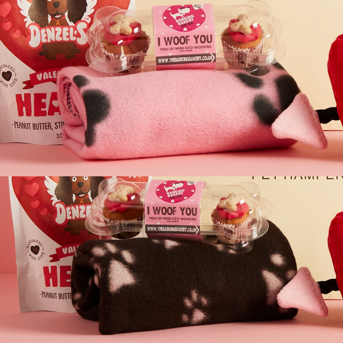 The Lots of Love Cat Hamper is sure to make them purr upon arrival. Including a King Catnip Heart, KONG Caticorn, blanket in your choice of colour, Soft Blush Bunny Cat Toy, & Lily’s Kitchen Salmon Treats. Your hamper will be completed with luxury gift packaging and your choice of red or pink tissue paper.