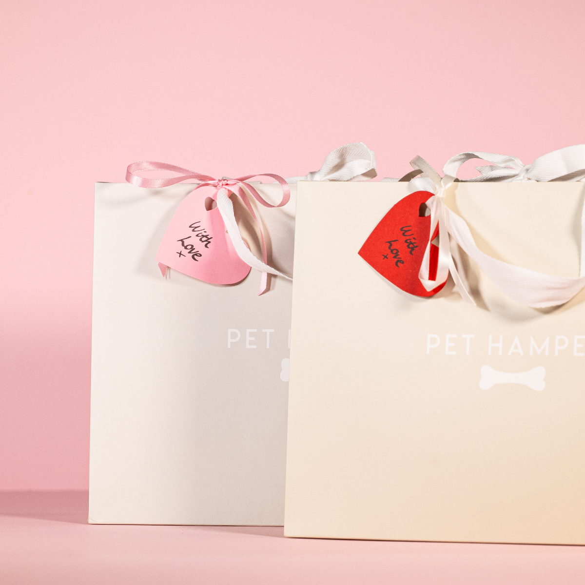 Choose from a red or pink theme, for your Valentine's gift packaging. Includes either pale pink or red bone tissue paper and pale pink or red heart gift tag, tied with ribbon.